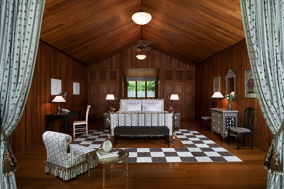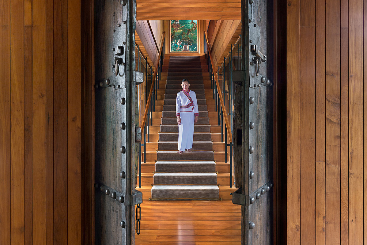 Often referred to as the Downton Abbey of Asia, the Main Villa is tastefully decorated with modern European furnishings, contemporary art, antique chandeliers and ceramics. Indoor spaces completely open up, taking full advantage of the light breeze and spectacular view of rice fields and mountains stretching to Myanmar.